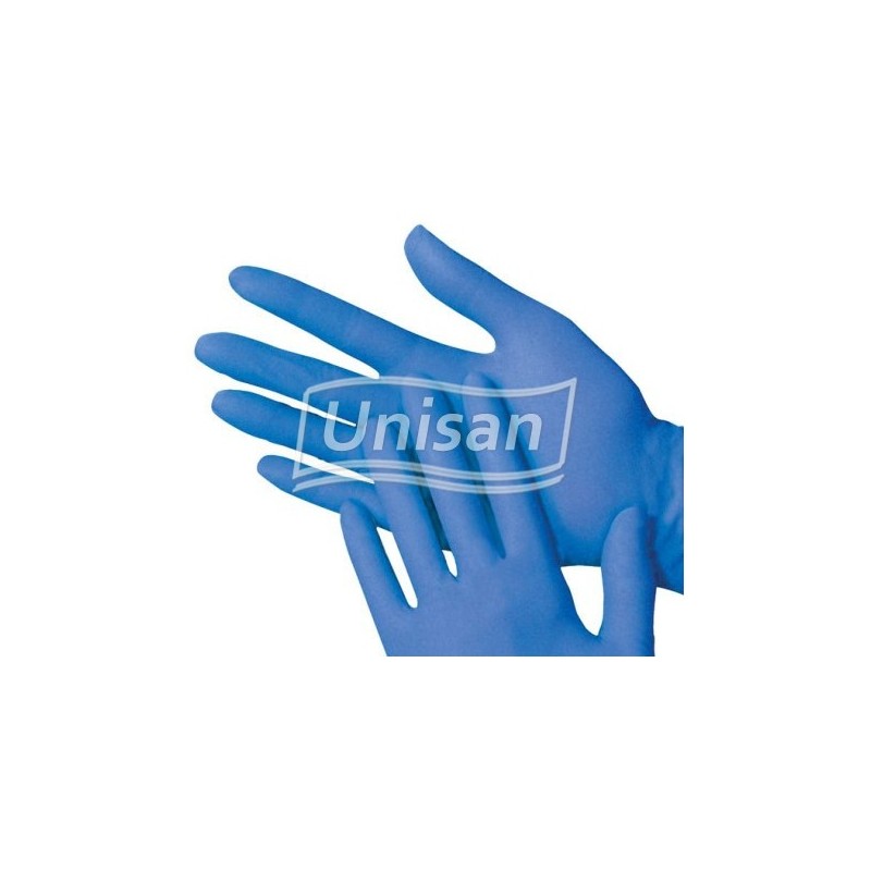 Luvas nitrilo azul sem pó.
